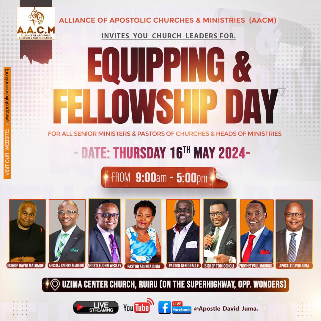 The Alliance of Apostolic Churches and Ministries is excited to extend a warm invitation to all senior pastors and leaders engaged in various ministries for a transformative day of Equipping and Fellowship. Mark your calendars for Thursday, May 16th, 2024, as we gather at the Uzima Centre in Ruiru for this enriching event.